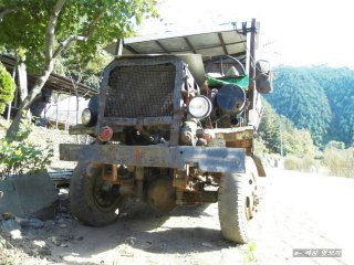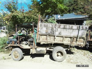 세월의 연륜이 그대로 묻어나는 추억의 도락구....운전석의 앞 창문은 샤시로 된 중고 창문으로 리폼했고 지붕도 대충 비가림만 해놓았다. 도락구는 일본말로 우리말의 트럭을 말하는 것이었는데 어릴 적에 늘 도락구로 부르곤 했었다.