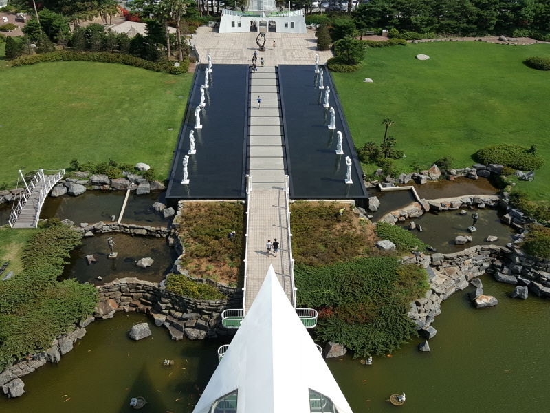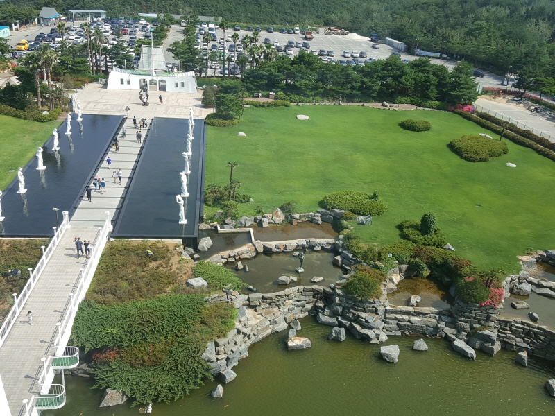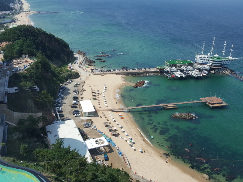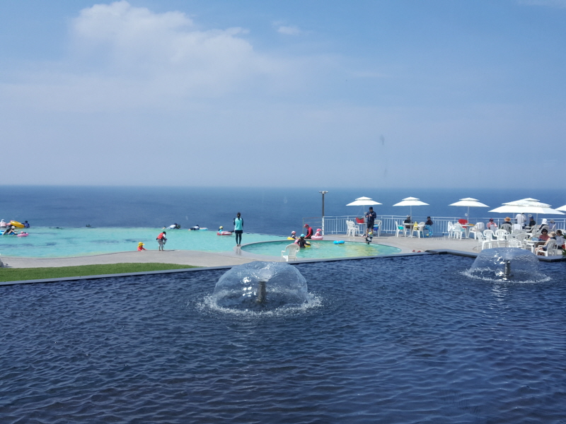 이곳저곳 둘러보며 사진을 찍고 맨 위 레스토랑에서 점심식사를 하며 내려다보던 동해바다와 썬크루즈 수영장은 지금 생각해도 시원했다.