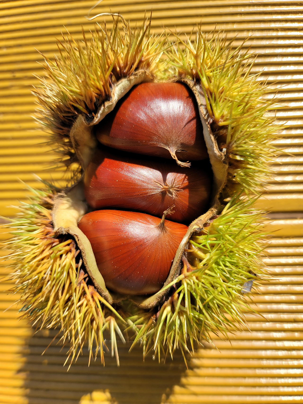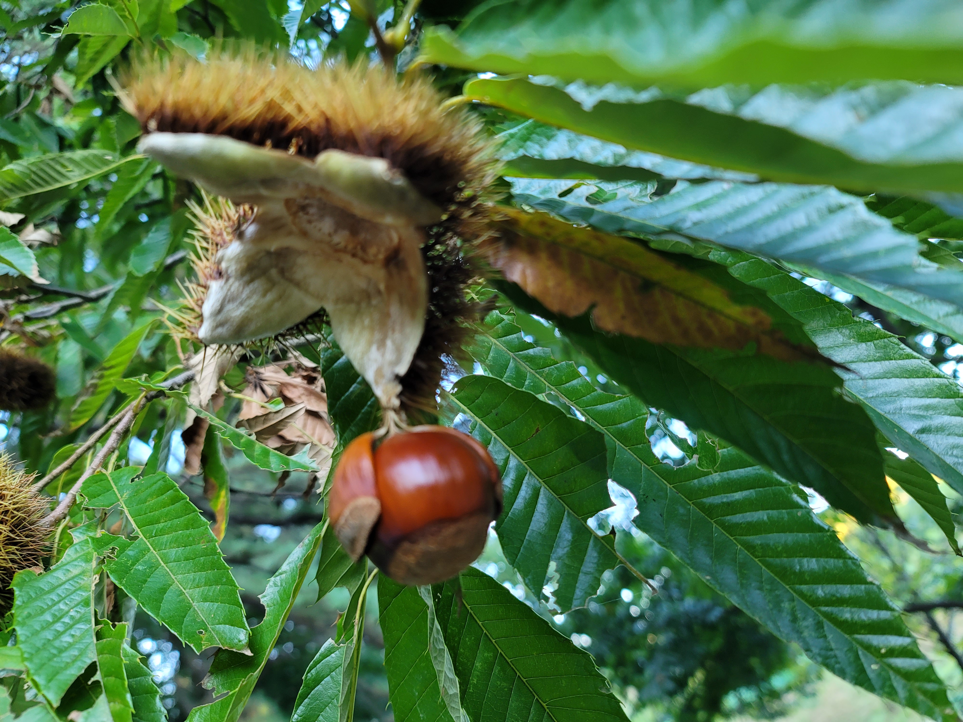 밤은 주로 5월에 꽃을 피우고, 9월에서 10월 사이에 수확을 하죠. 밤나무는 보통 5~6년이 지나야 열매를 맺기 시작하는데, 이때부터는 매년 수확이 가능해진다고 합니다. 제가 사는 곳에 밤나무가 많은 이유는 예전에 산불이 나고 난 후 대체 나무로 밤나무를 식재했는 지금은 모두 아람드리로 자라 해마다 밤을 주우러 오는 사람들이 많습니다.