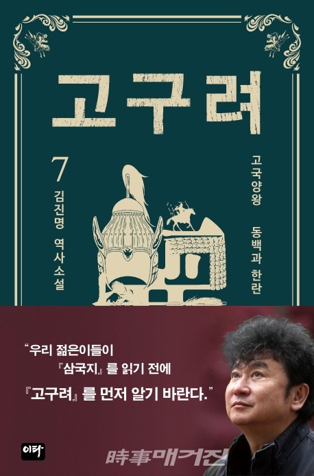 김진명 작가의 역사소설 '고구려'의 표지입니다. 고구려의 전사 헬멧이 그려져 있습니다.