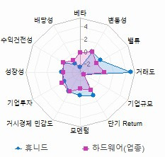 휴니드와 하드웨어(업종)의 비교 차트에서 볼 수 있듯이, 다양한 성과 지표에서 휴니드는 하드웨어 업종에 비해 상대적으로 낮은 성과를 보이고 있습니다. 이는 향후 투자 결정에 있어 고려해야 할 중요한 요소 중 하나입니다.