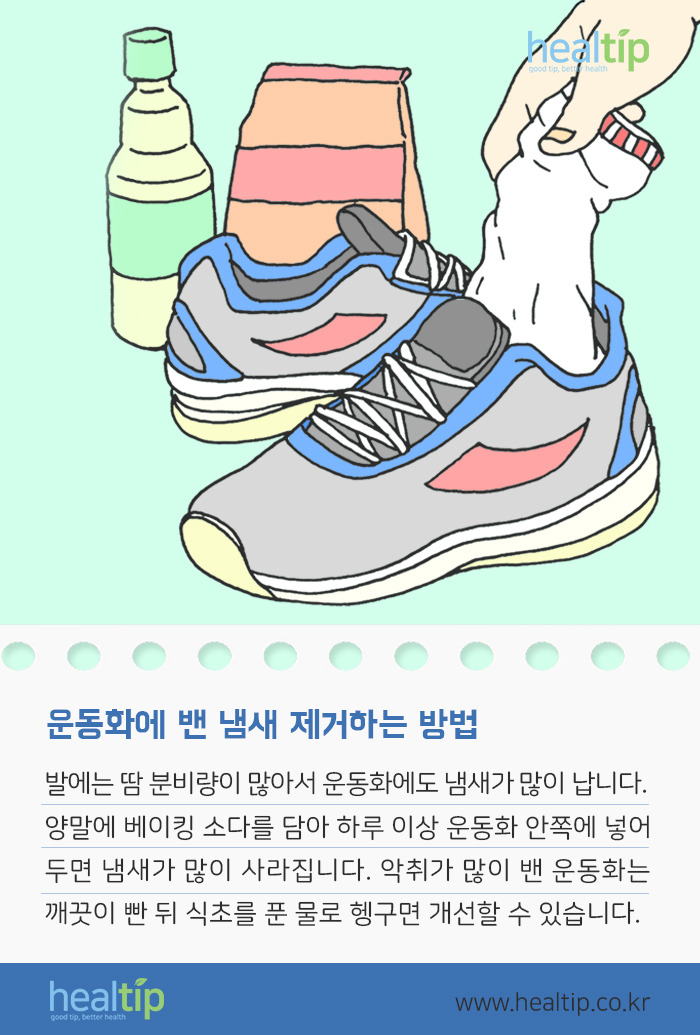 [4] 힐팁 - 운동화에 밴 냄새 제거하는 방법 (http://www.healtip.co.kr/news/articleView.html?idxno=4180)
