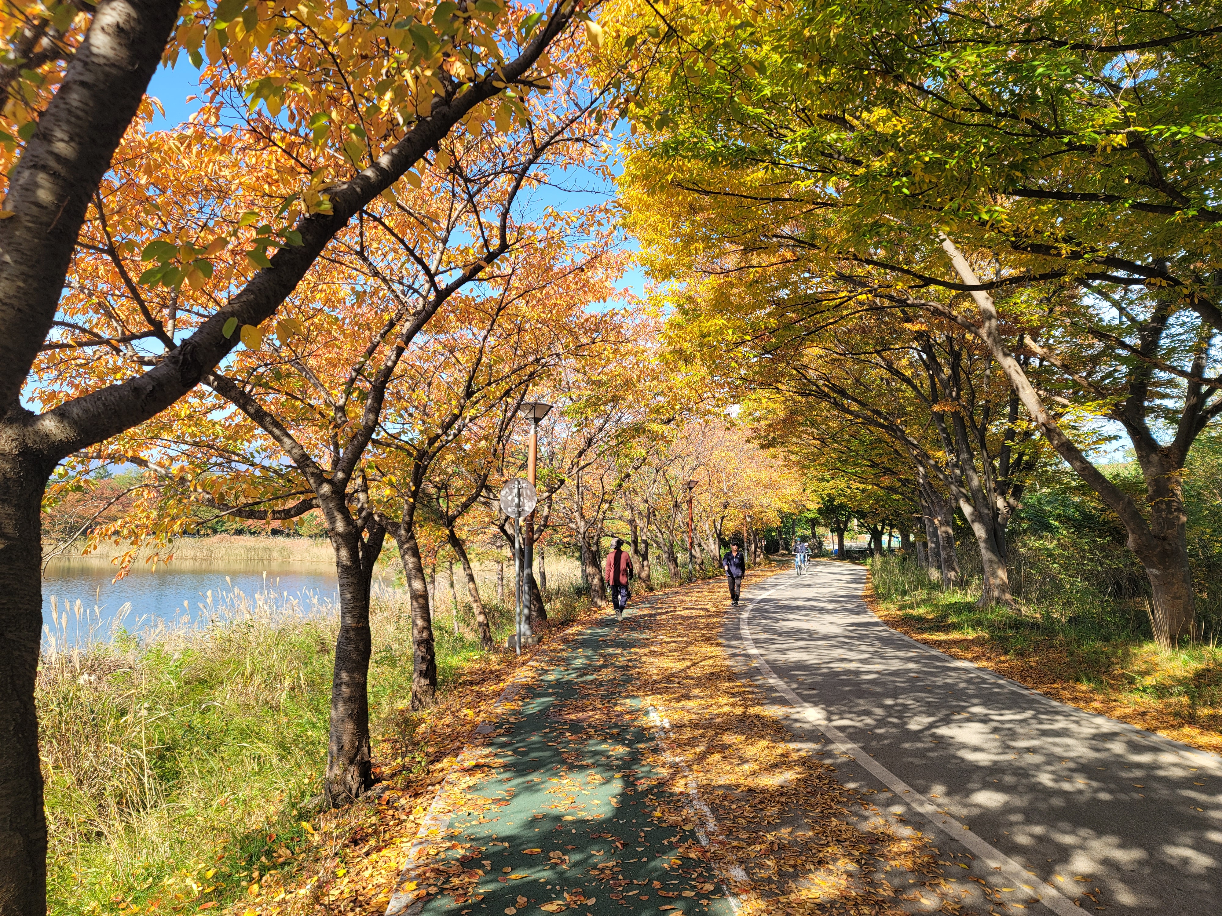 오늘 아침 출근하려는데 아내가 갑자기 영랑호수를 한바퀴 돌자고 하네요. 어제 저녁무렵 운동삼아 영랑호수를 돌았는데 벌써 낙엽이 많이 져서 이번주 아니면 예쁜 풍경을 볼 수 없을 것 같다는 지인의 말에 마음이 무척이나 급했나 봅니다.