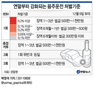 [4] 나무위키 - 음주운전/처벌 및 영향 (https://namu.wiki/w/%EC%9D%8C%EC%A3%BC%EC%9A%B4%EC%A0%84/%EC%B2%98%EB%B2%8C%20%EB%B0%8F%20%EC%98%81%ED%96%A5)