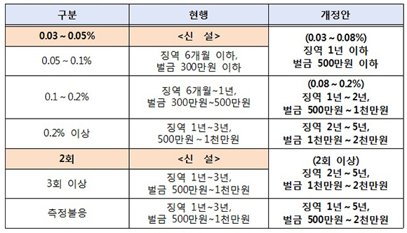 [1] 생활법령 - 교통/운전 > 음주운전 금지 | 찾기쉬운 생활법령정보 (https://www.easylaw.go.kr/CSP/OnhunqueansInfoRetrieve.laf?onhunqnaAstSeq=90&targetRow=1&sortType=DEFAULT&pagingType=default&onhunqueSeq=3343)