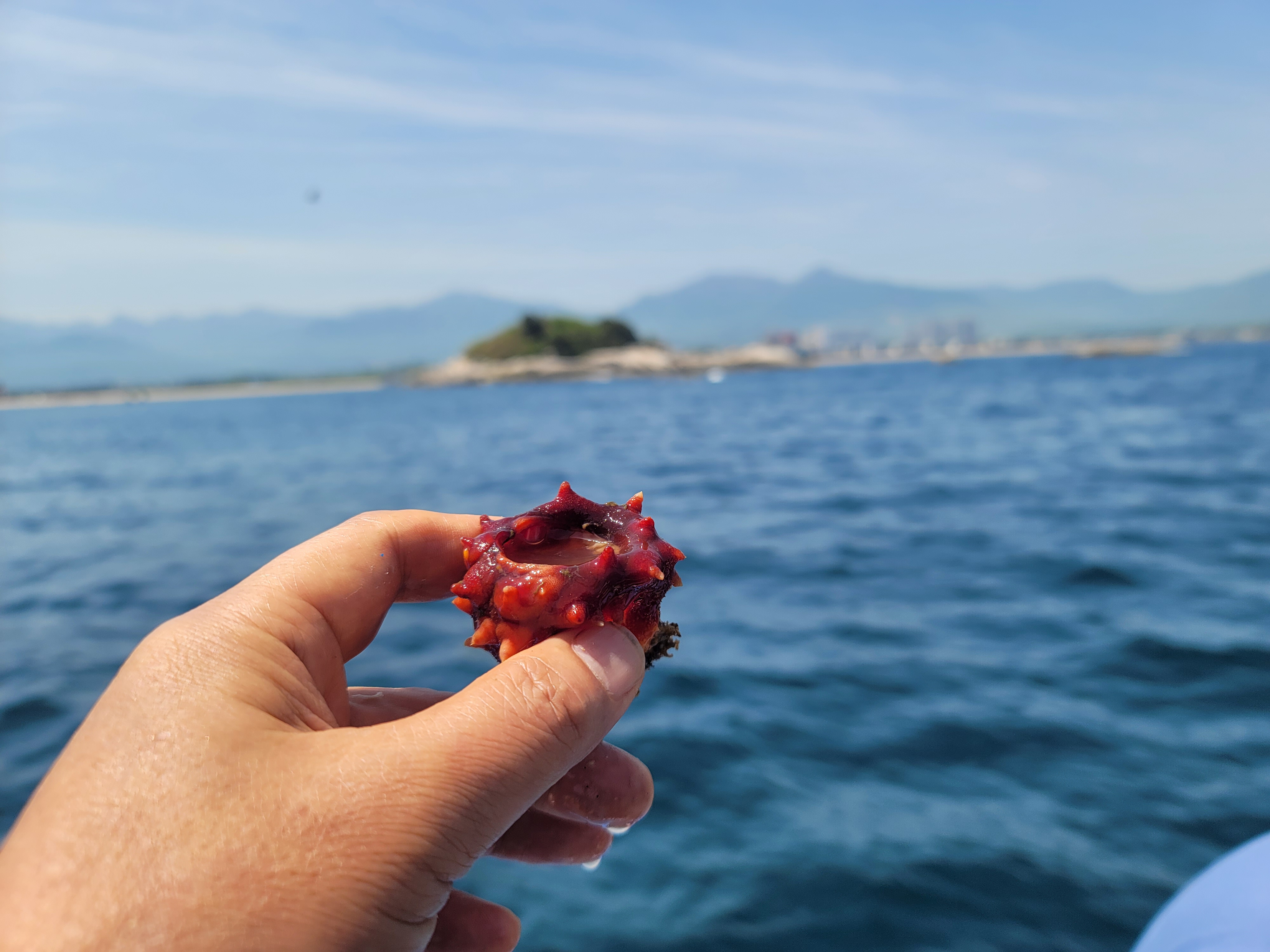 낚시를 하다 간식으로 빵을 먹었는데 목이 마르다 하니 친구가 건네준 멍게를 먹으니 짭조름 하니 맛이 좋습니다. 멍게 껍데기에 물을 따라 기념샷 한컷. 사실은 술을 따라 먹고 싶었지만 "안돼" 단호한 선장님의 말씀에 깨갱했습니다...ㅎ