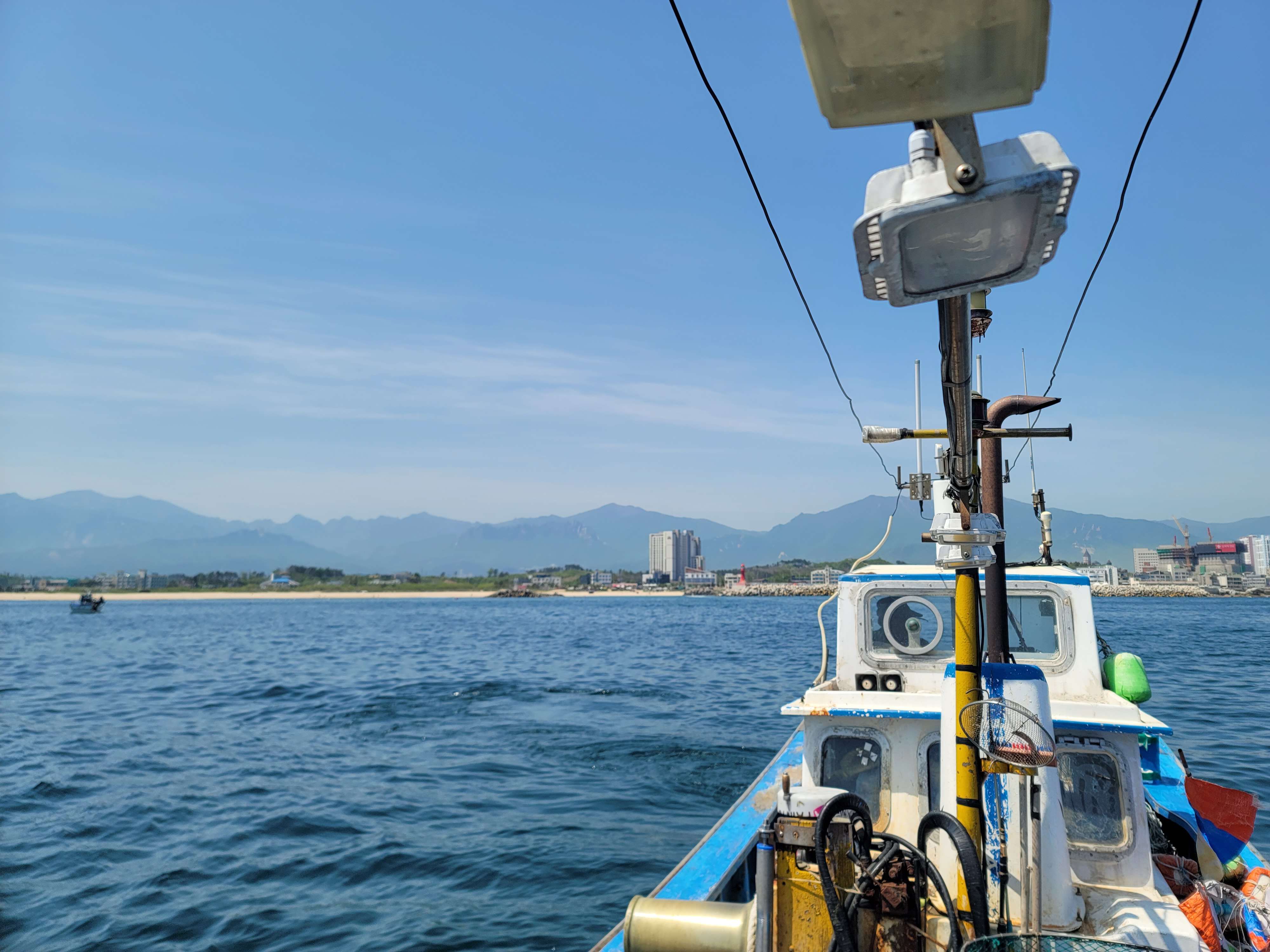어디가 좋을까? 낚시 포인트를 찾는 선장님! 배를 돌릴 때 마다 360도 파노라마처럼 펼쳐지는 동해바다의 풍경이 정말 예술입니다.