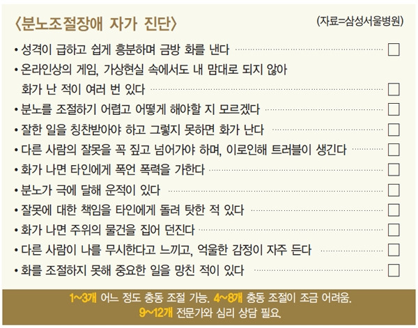 [3] 네이버 블로그 - 사소한 일에도 화를 참기 힘들다면, 분노조절장애 자가진단 ... (https://m.blog.naver.com/icmcseoul/223022660805)