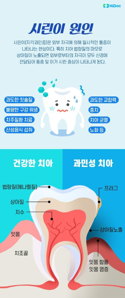 [2] 국가건강정보포털 - 시린이(치아지각과민) - 국가건강정보포털 - 질병관리청 (https://health.kdca.go.kr/healthinfo/biz/health/gnrlzHealthInfo/gnrlzHealthInfo/gnrlzHealthInfoView.do?cntnts_sn=5709)