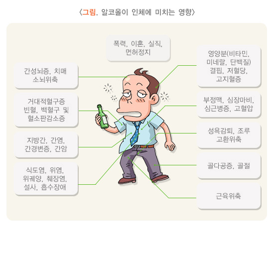 술은 인류의 역사와 함께 시작되었다고 할 정도로 오랜 시간 동안 많은 사람들에게 사랑을 받아왔습니다. 적당한 음주는 사회생활에서 윤활제 역할을 하기도 하고, 심리적, 육체적 건강에 긍정적인 영향을 주기도 합니다. 그러나 술을 습관적으로 남용하는 경우 개인에게 정신적, 신체적으로 여러 질환을 야기할 뿐만 아니라, 실직, 사고, 성폭력, 가정폭력, 이혼 등 사회적으로도 많은 문제를 일으킵니다.
